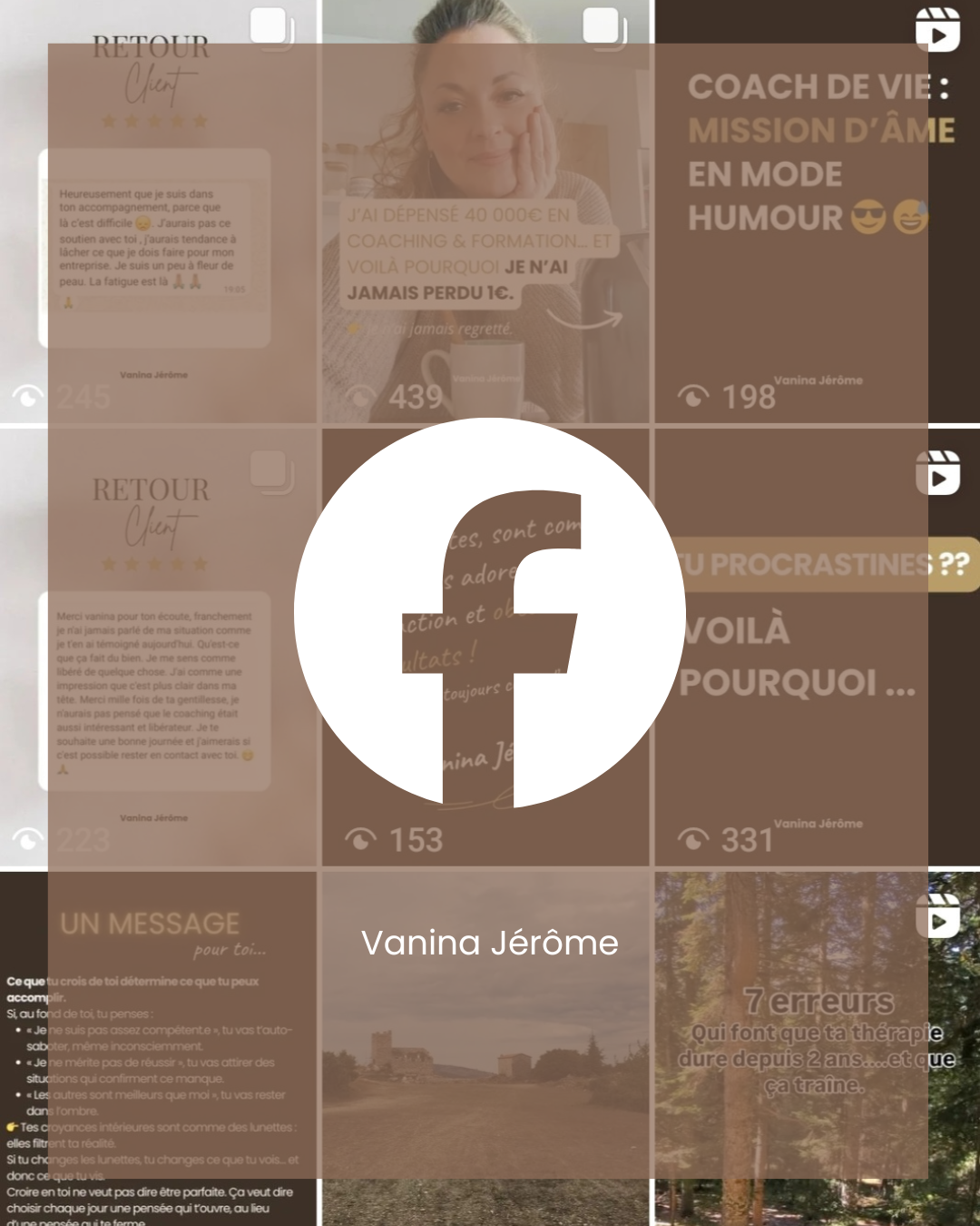 Merci à toi ma Vanina pour m'avoir proposée ce si beau coaching, pour avoir croisée mon chemin, pour m'avoir écoutée sans jugement, pour m'avoir aidée à prendre conscience de mes peurs, de mes blocages, mes traumas et aller creuser pour mieux me comprendre.